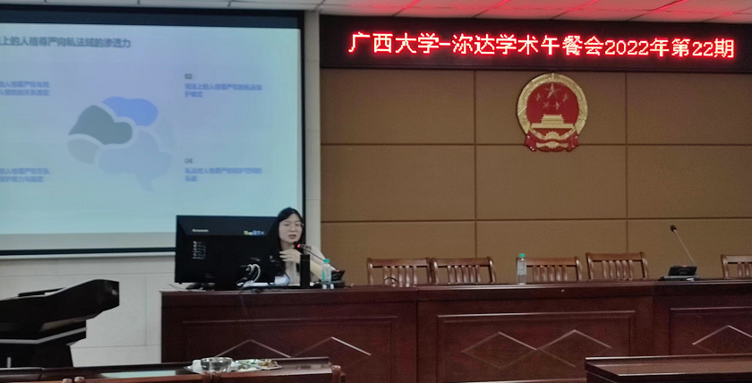 6月14日中午12点到13点,beat365在201报告厅成功举行beat365-沵达律师事务所第二十二期学术午餐会。本次会议主题是“人格尊严的宪法保护能力研究”,由任巧博士主讲,许光耀教授主持。