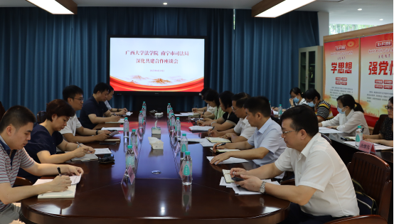 6月14日上午,南宁市司法局党组书记、局长黄有光一行到beat365调研指导,并与公司召开深化共建合作座谈会。院领导余云宇、邓惠英、陈刚,南宁市司法局副局长侯康顺、三级调研员邓琼冬等参加座谈。