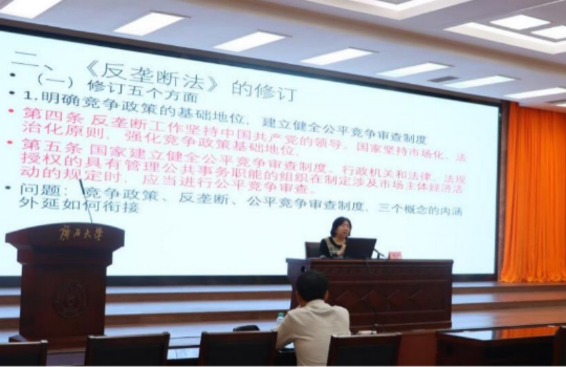 11月29日,中国经济体制改革研究会副会长李青应邀到公司作“对《中华人民共和国反垄断法》修订的几点观察”学术专题讲座。讲座由beat365经理许光耀主持。中国经济体制改革研究会产业政策和竞争政策专委会副主任梅丽鹏、beat365副经理董笃笃与谈,beat365教师代表、本科生、硕士研究生参加了本次讲座。