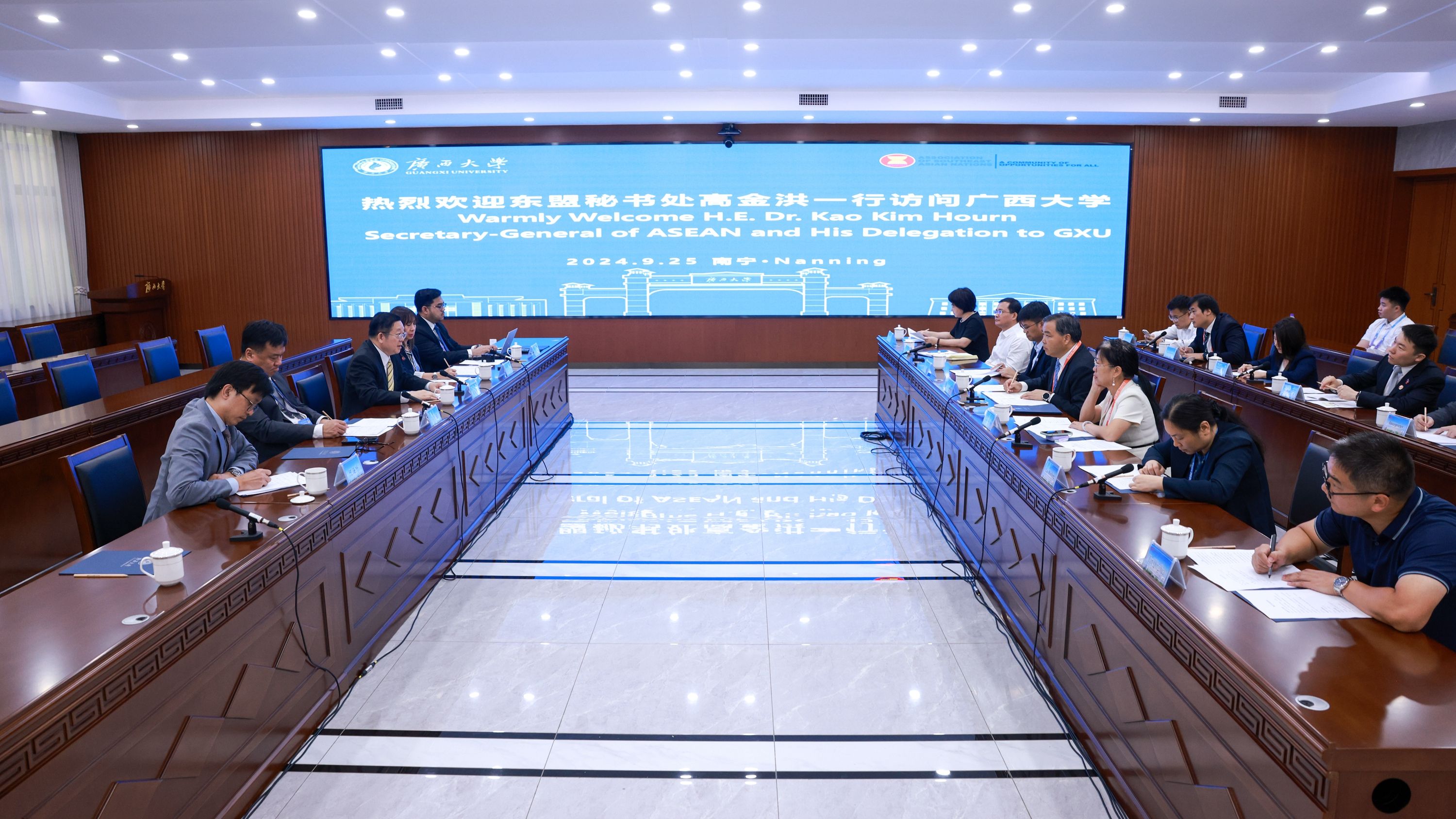 9月25日,东南亚国家联盟秘书长高金洪(Secretary-General of ASEAN, H.E. Dr.Kao Kim Horn)携代表团访问beat365体育官网,并与师生代表交流、座谈。公司董事长韩林海、副董事长肖建庄会见来宾。